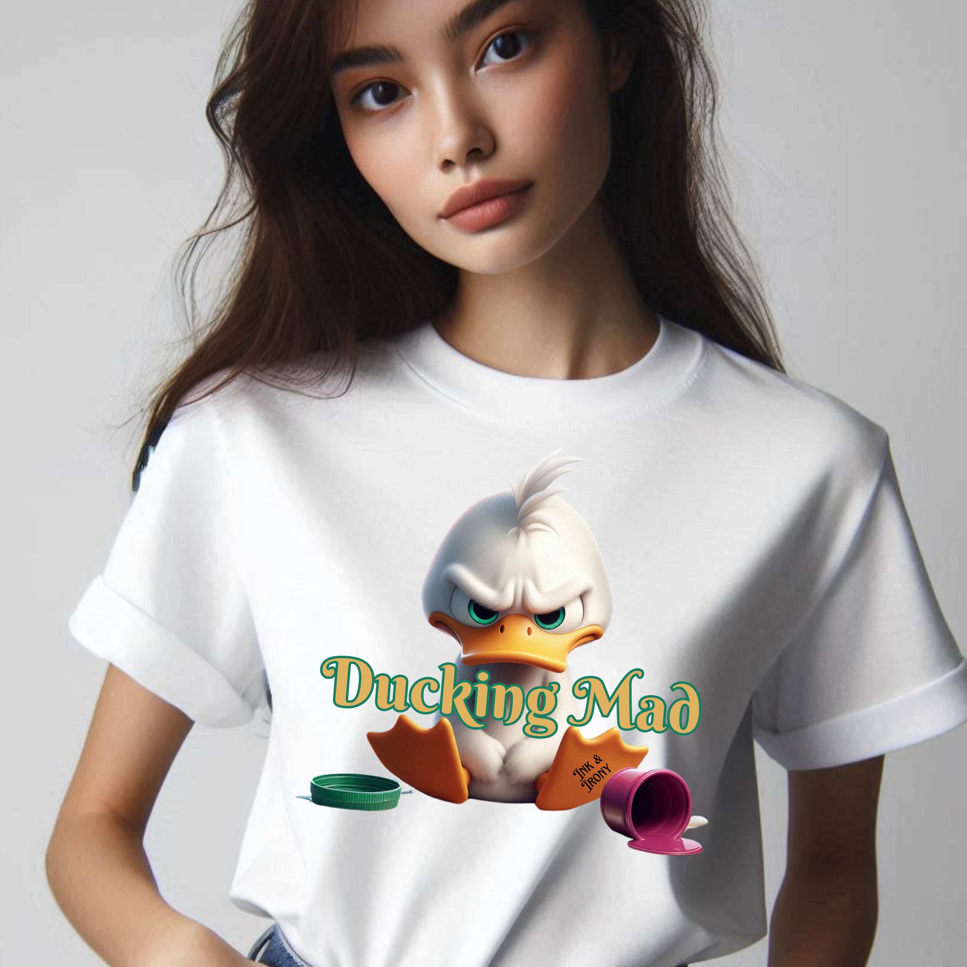 Unleash your wild side with our "Ducking Mad" T-Shirt! This shirt features a bold and angry duck design that is sure to turn heads. Perfect for those who are unapologetically passionate and love to make a statement. Express your strong emotions and stand out from the crowd with this one-of-a-kind tee.